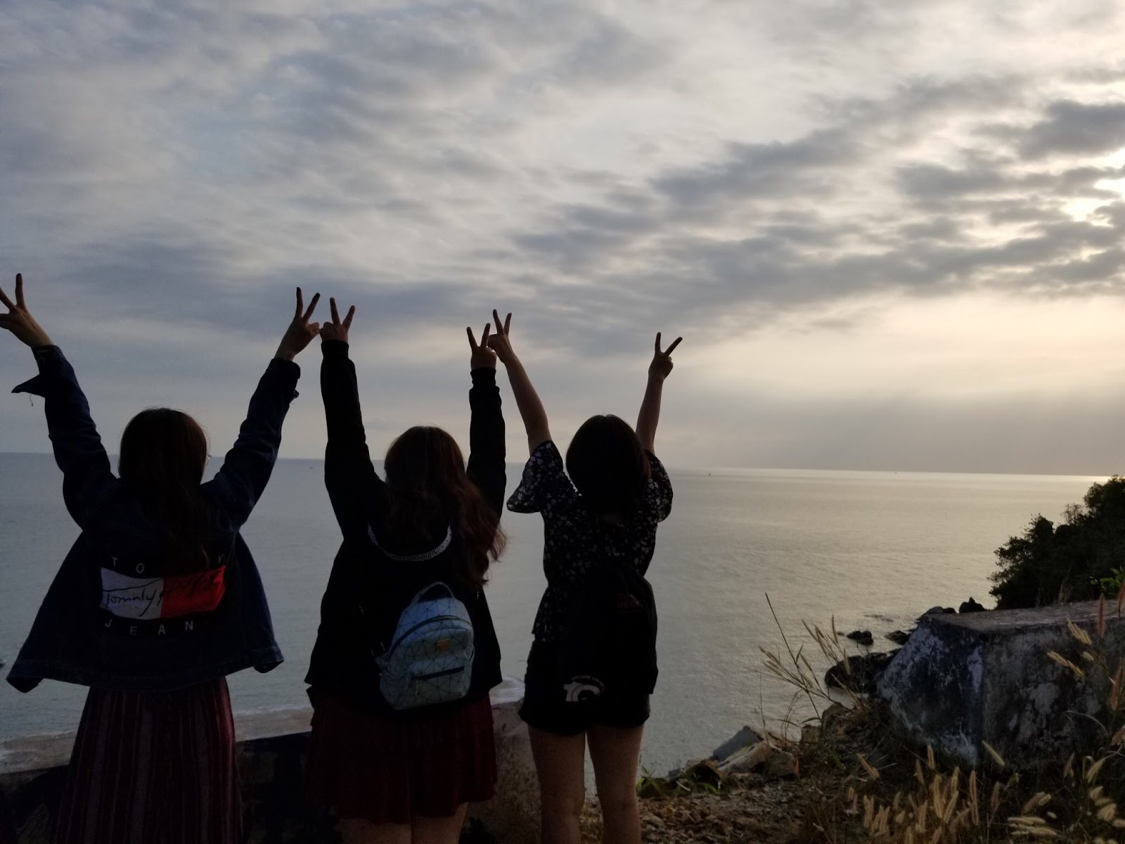 Đến nơi, thì quả thật rất xinh, những căn bungalow đầy sắc màu, đi theo con đường bậc thang dẫn xuống bên dưới homestay giống như bạn đang tiến gần đến “thiên đường”. Vì tụi mình ở căn dưới cùng, ngay sát biển luôn nên khung cảnh thiên nhiên bao la, tươi đẹp hiện ra trước mắt. Thử tưởng tượng sáng sớm tinh mơ, kéo rèm ra là thấy ngay khung cảnh mặt trời lấp ló ở đường chân trời, những tia nắng ban mai lấp lánh phản chiếu dưới mặt biển nhẹ nhàng đánh thức bạn. Như thế là đủ tuyệt vời lắm rồi.