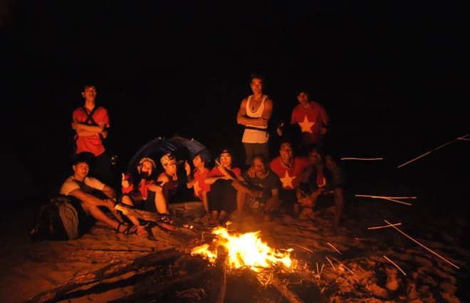 Để làm cho cắm trại của bạn thêm sinh động, hãy cắm lửa trại vào tối. Cùng nhau quây quần bên đám lửa, trò chuyện, chơi trò chơi hoặc nhâm nhi chút bia, chút mực nướng. Đó là những giây phút gần gũi, chia sẻ cùng đám bạn, thật tuyệt vời.